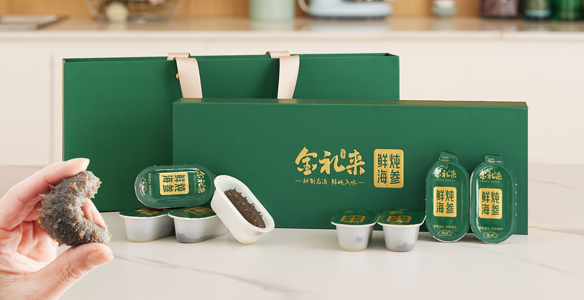 金礼来鲜炖海捕刺参营养丰富,开盖即食,高滋Q弹,鲜香味美,正成为海参市场上的新宠,…